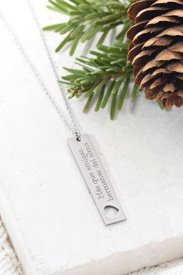 El colgante es personalizado con láser de fibra óptica lo que garantiza un grabado profundo de calidad.