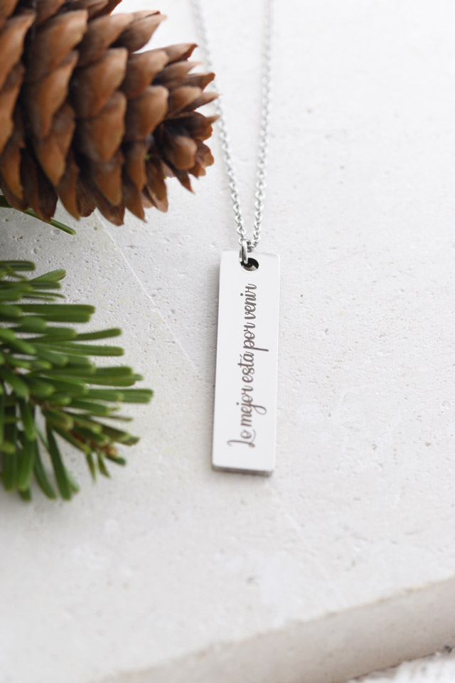 Cadena y colgante elaborado en acero y grabado con láser de fibra óptica, lo que garantiza un grabado profundo y de lata calidad.